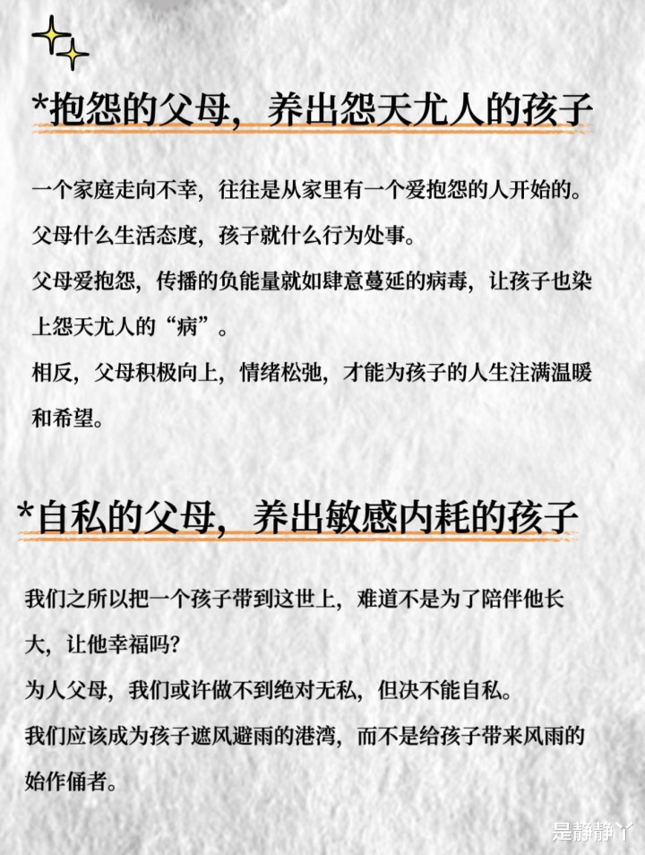 一个家庭走向灾荒,频频是从家里有一个爱衔恨的东谈主驱动的。父母什么生存魄力,孩子就什么四肢服务。若父母爱衔恨,传播的负能量就像鼎力推广的病毒,让孩子也染上怨天尤东谈主的“病”。试思,每天回家听到的齐是“职责太累”“邻居太吵”“生存太难”,孩子会学到什么?是照看问题的勇气,还是对生存的抉剔?相背,父母积极进取、心绪温情,才调为孩子的东谈主生注满谦让和但愿。
