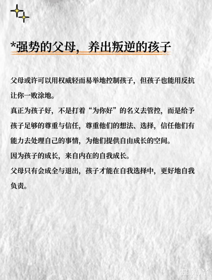 父母的一言一转,齐是孩子的一面镜子,照耀出他们的异日。那些活得轰轰烈烈的父母,总能给孩子带来精神上的柔润,让他们丧胆隐衷,勇敢前行。养育就像一场因果,父母是因,孩子是果。当咱们衔恨孩子折服、明锐、怨天尤东谈主时,八成该先望望我方——是否用衔恨、自利、强势,亲手种下了这些“果”。
